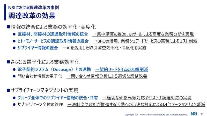 こうした課題解決のために、NRIは次のような3つの方針のもと、調達業務改革およびシステムの刷新を進めてきたといいます。