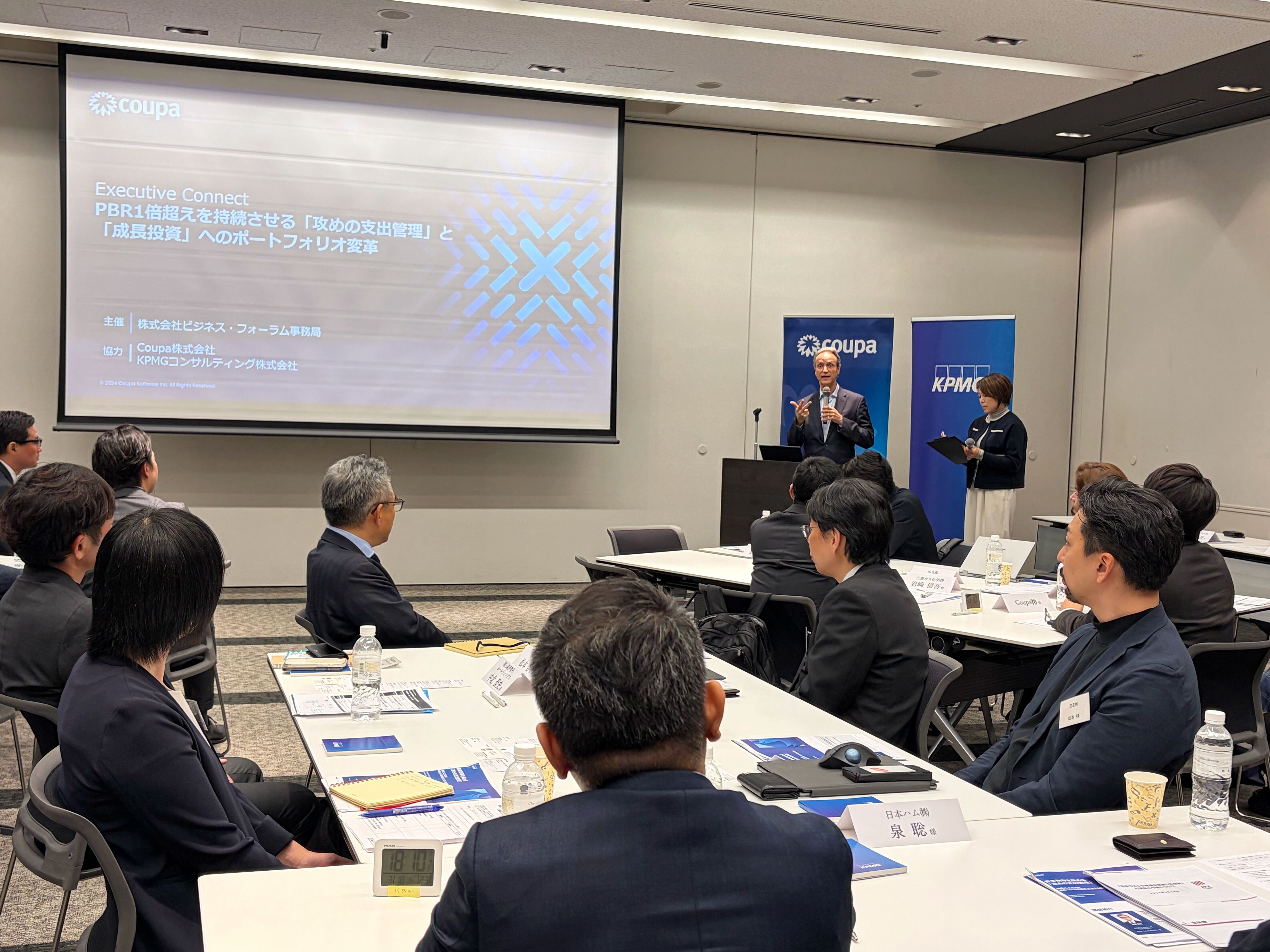 JPは、グローバルの財務リーダーが抱える共通の課題として「データの可視化の低さ」と「AIの信頼性に対する懸念」の2点を挙げました。Coupaのプラットフォームは、全社の支出情報を一元管理し、精度の高いデータとAIを活用することで、コンプライアンスを遵守しながらコスト削減とマージンの改善を実現します。JPは、「支出管理の高度化によって、皆様がより戦略的な投資へシフトできるよう支援していきたい」と語り、盛況のうちにイベントは幕を閉じました。