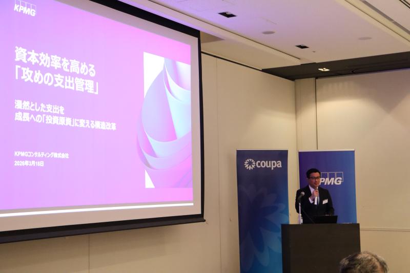 KPMGコンサルティング株式会社 シニアマネジャー 安達 貴裕 氏からは、「資本効率を高める『攻めの支出管理』」と題した講演をいただきました。