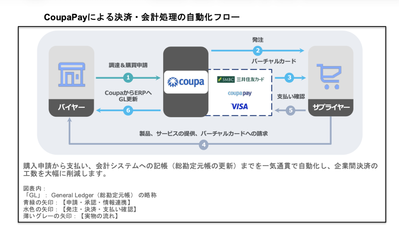 Coupa株式会社(読み方:クーパ、本社:東京都港区、代表取締役社長:反町 浩一郎、以下:「Coupa」)、三井住友カード株式会社(本社:東京都江東区、代表取締役 社長執行役員 CEO:大西 幸彦、以下:「三井住友カード」)、ビザ・ワールドワイド・ジャパン株式会社(本社:東京都千代田区、代表取締役社長:シータン・キトニー、以下:「Visa」)は、決済ソリューション「Coupa Virtual Card」を日本国内で展開することを発表いたします。